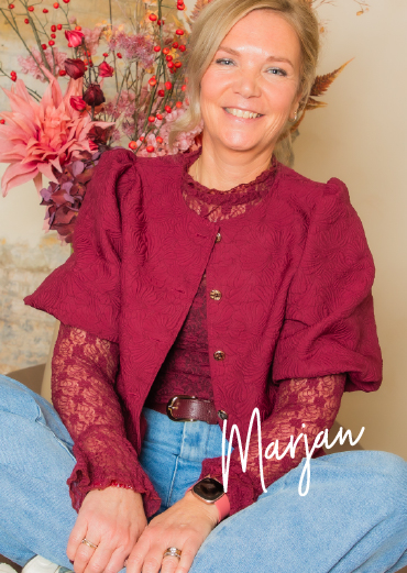 Mijn naam is Marjan Huisman, het gezicht achter Mariview. Jarenlang werkte ik in uiteenlopende functies binnen de automotive branche, van leidinggevende tot ondernemer. Ik weet hoe het voelt om continu “aan” te staan: te veel tegelijk, je hoofd nooit echt uit en de druk die langzaam oploopt. Precies daarom help ik ondernemers overzicht terug te brengen en weer grip te krijgen op hun bedrijf én zichzelf.